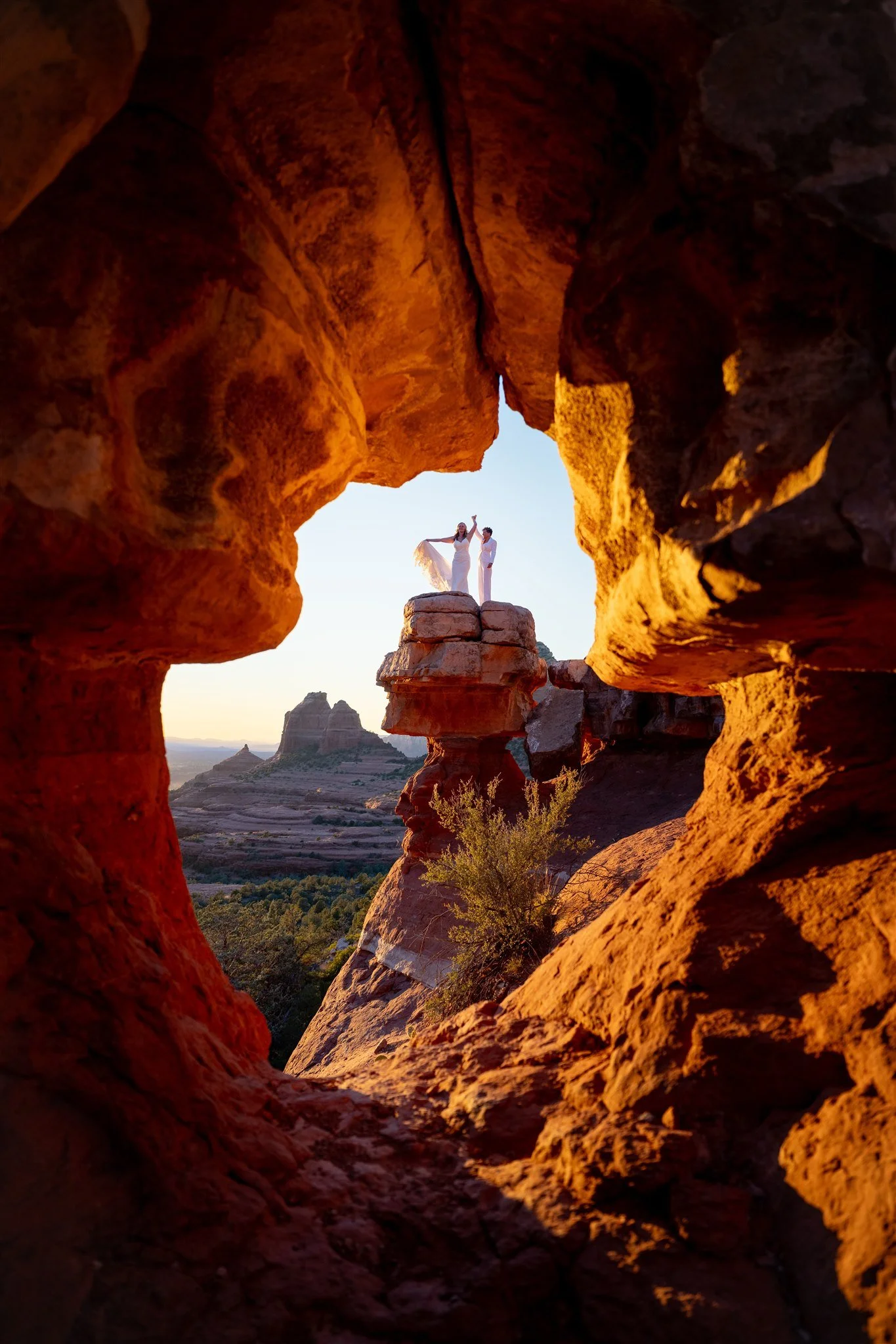 You’re not a client to us. You’re the heart and soul of this adventure! The focus is on you two: hiking side by side through red rock trails, laughing until your stomach hurts, and soaking in the desert sun as you explore together. It’s holding each other close as you read your vows against jaw-dropping backdrops, and feeling the rush of joy as you realize: you’re married! It’s clinking glasses by the fire, sharing stories under a sky bursting with stars, and waking up to a new day of adventure with your best friend by your side.